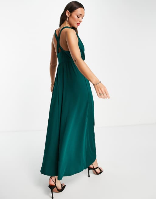 Vila Bridesmaid V Neck Maxi Dress In Dark Green Asos
