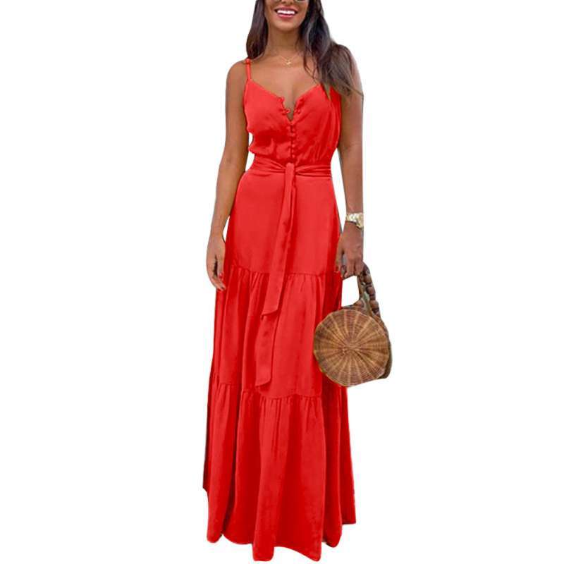 Promo Bluelans Summer Beach Bohemian Women Solid Color Sleeveless V Neck Belted Maxi Dress Di Seller Bluelans China Blibli